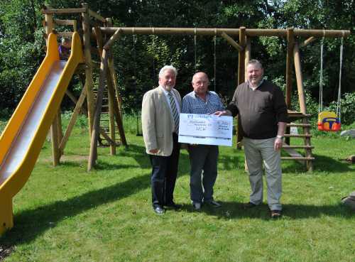 Bereits vor langer Zeit mussten die Spielgeräte am Rande des Sportplatzes altersbedingt abgebaut werden. Nun haben die Kinder wieder einen Bereich für sich, in dem sie sich unter der Aufsicht ihrer Eltern die Zeit auf der Schaukel und im Sandkasten vertreiben können.