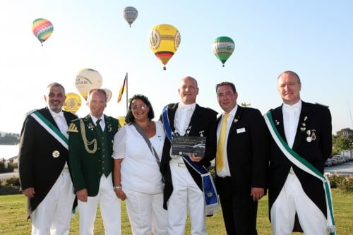 Warstein, 5. September 2012 –180 Ballonstarts, 800 Schützen und 4.300 Zuschauer – das sind die Zahlen vom Tage bei der 22. Warsteiner Internationalen Montgolfiade. 59 Heißlüfter stiegen am Morgen in den Himmel über Warstein, 121 Ballone folgten am Abend. Über 100 Schützenkönigspaare mit Abordnungen ihrer Vereine folgten der Einladung von Brauerei-Chefin Catharina Cramer zum 3. Warsteiner Majestäten-Treffen. Die Zuschauer auf dem Festgeländen erlebten Ballonstarts und Feststimmung bei traumhaften Wetterbedingungen.